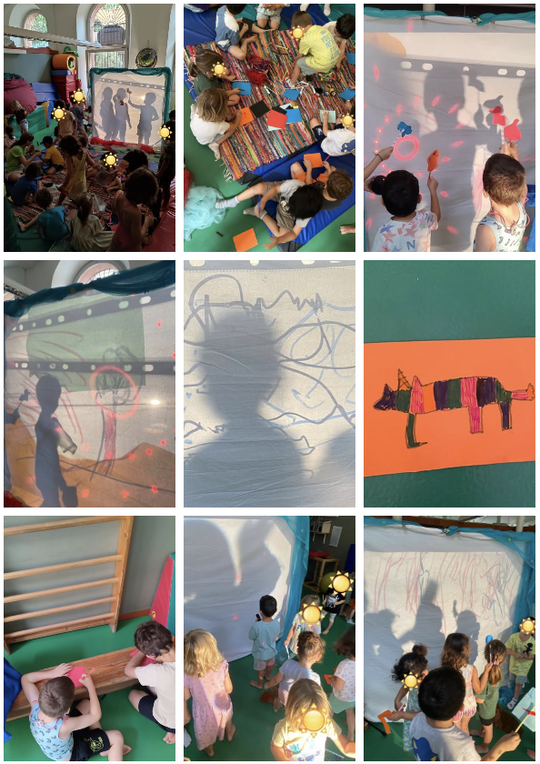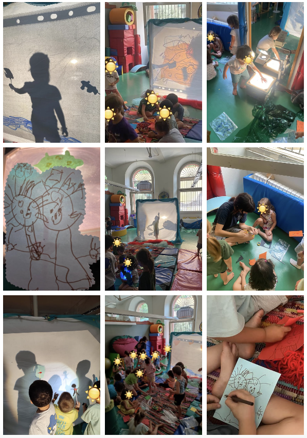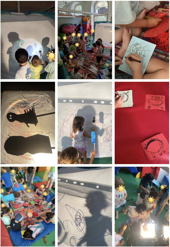 Vam interactuar, jugar i experimentar amb la llum i el color, les siluetes, les formes i els filtres, el teatre i la música en un espai de creació compartida ple d’entusiasme, caliu i imaginaris infinits!!!